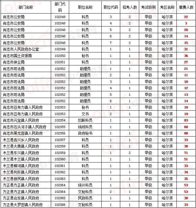 【哈爾濱】2014年黑龍江省公務(wù)員考試?yán)U費人數(shù)統(tǒng)計(5月19日)