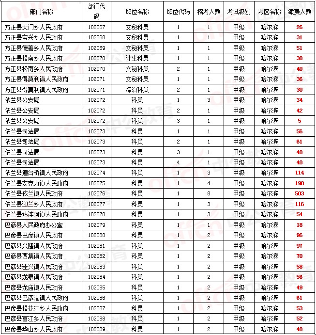 【哈爾濱】2014年黑龍江省公務員考試繳費人數(shù)統(tǒng)計(5月19日)
