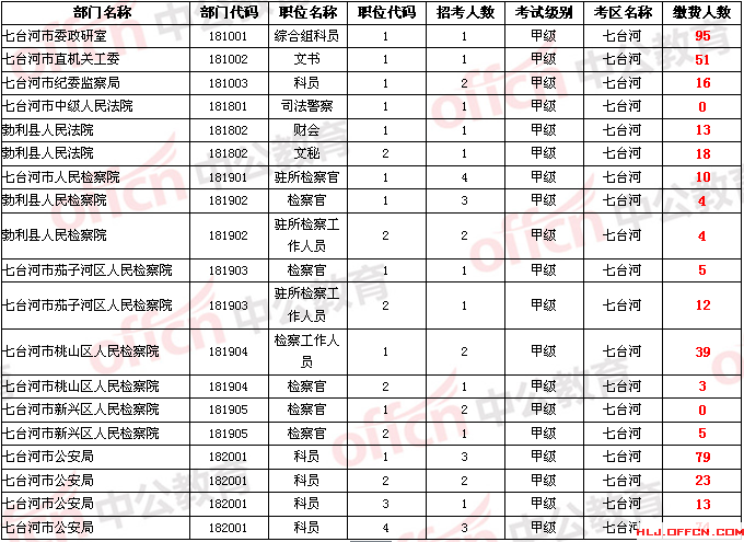 七臺河中公教育為參加2014年黑龍江省公務(wù)員考試的考生整理截止至5月19日晚17點(diǎn)的部分繳費(fèi)人數(shù),并且在更新中。。。由于報(bào)名網(wǎng)站報(bào)名情況每30分鐘統(tǒng)計(jì)一次,數(shù)據(jù)可能會有細(xì)微差異,所有數(shù)據(jù)僅供大家參考。