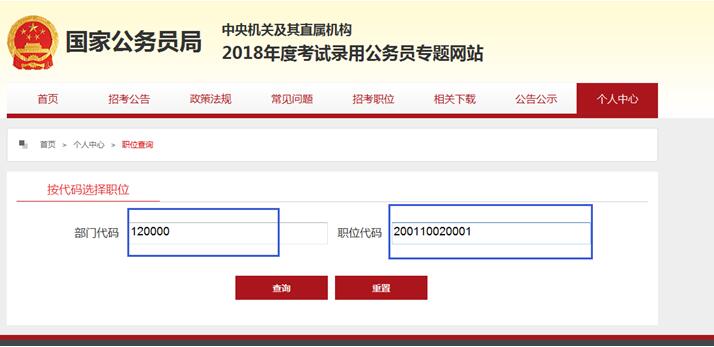 10、如圖所示我們選擇合適的職位進(jìn)行報(bào)名。首先要填寫(xiě)部門(mén)代碼和職位代碼。