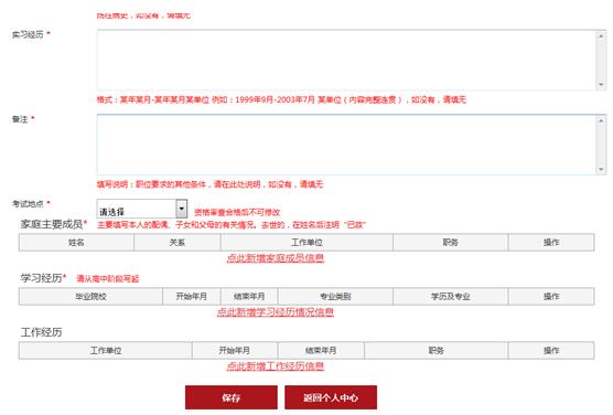 完善個人信息是一項“龐雜的工程”,需要考生準備很充分很充足的資料,有*標注的是必須填寫的內(nèi)容,考生要一定要如實填寫,將各類證件備齊,并確定好具體日期。