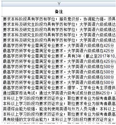 這些職位選擇出來之后,考生必須認(rèn)真瀏覽“備注”欄,備注這一欄是包含大量信息,會(huì)列出學(xué)歷專業(yè)、資格能力、性別、工作經(jīng)歷性質(zhì)等各個(gè)方面的要求。