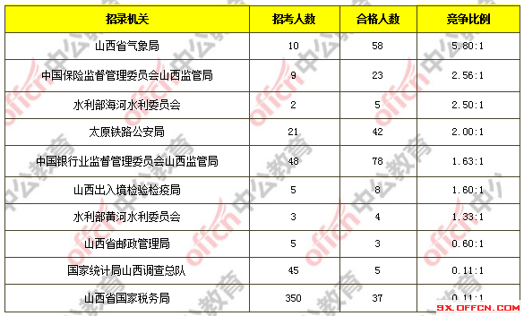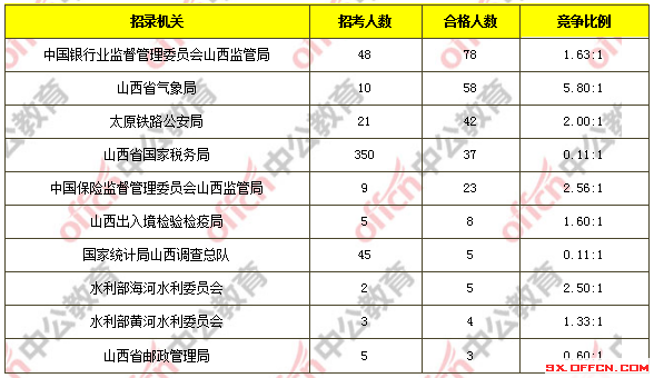 為幫助廣大考生更清晰的了解今日?qǐng)?bào)名情況,山西中公教育整理了審核通過人數(shù)前十位的部門以及競爭比例最激烈的十大部門,供廣大考生參考: