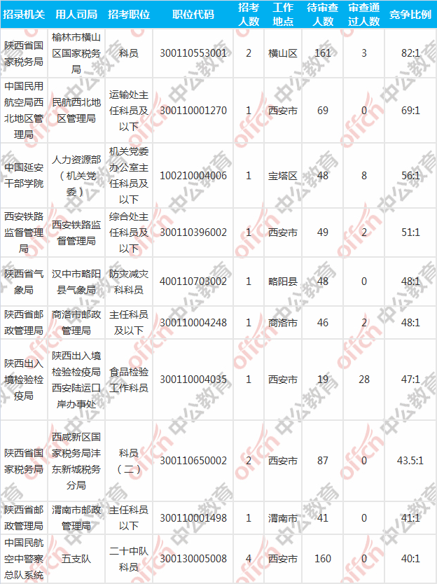 [31日9時(shí)]2018國(guó)考報(bào)名數(shù)據(jù):陜西767人過(guò)審 最熱職位82:1