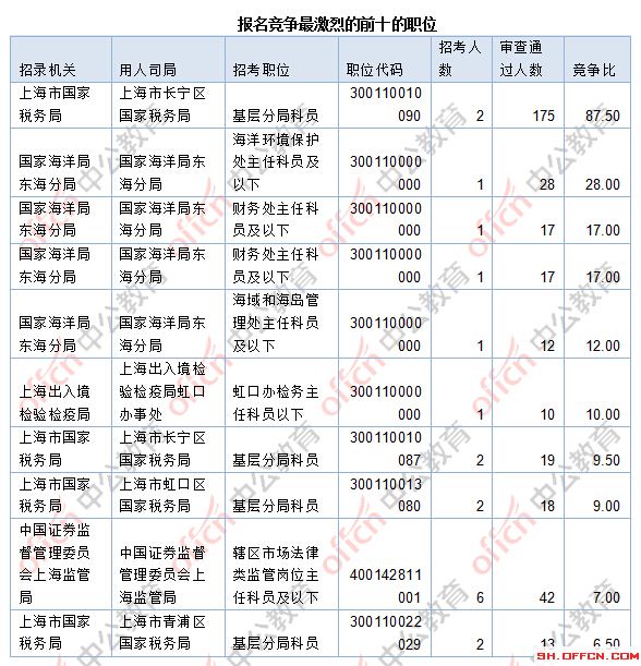 [31日10時(shí)]2018國考報(bào)名數(shù)據(jù):上海737人過審 最熱競爭比87.5:1