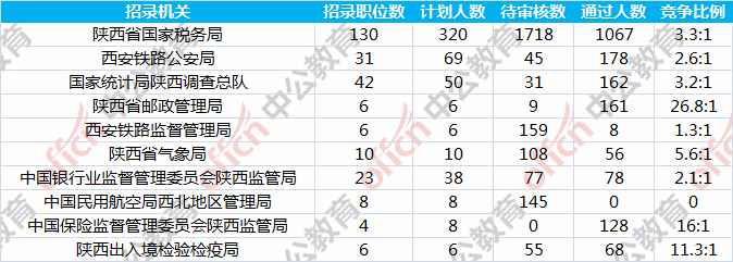 截至到31日18時,通過審核人數(shù)前三位的部門依次是:陜西省國家稅務局、西安鐵路公安局、國家統(tǒng)計局陜西調(diào)查總隊,三部門通過審核總?cè)藬?shù)達1407人,占通過審核總?cè)藬?shù)的71.06%。