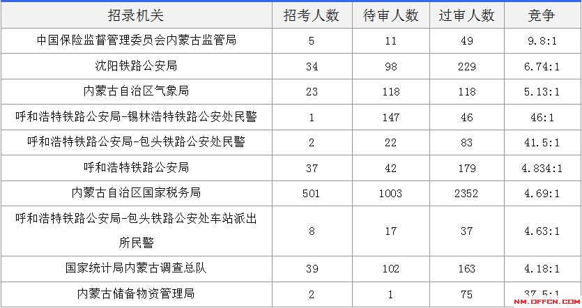 [31日18時]2018國考報名數(shù)據(jù):內(nèi)蒙古3843人過審 最熱職位競爭129:1