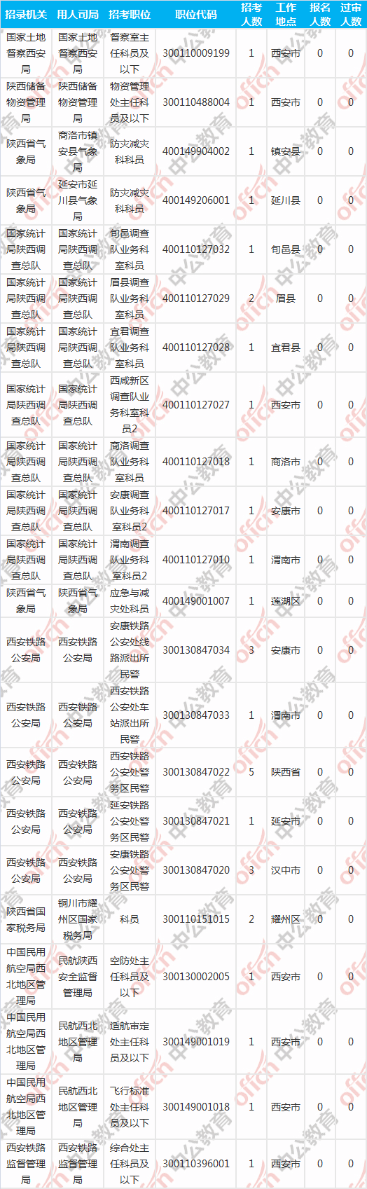 [1日16時]2018陜西國考報名人數統(tǒng)計:陜西3899人過審 最熱職位119:1
