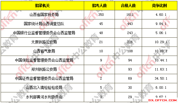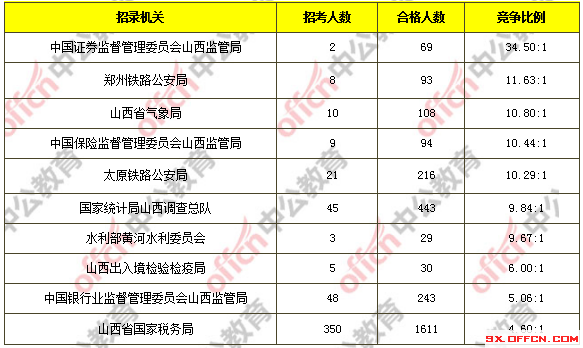 截至11月1日16時,據(jù)中公網(wǎng)校統(tǒng)計,國考職位中工作地點在山西的職位通過審核總人數(shù)為3009人,和去年同期相比合格人數(shù)減少了309人,截止目前共有44個職位無人報考,平均競爭比例為5.67:1,和去年同期競爭比基本持平。