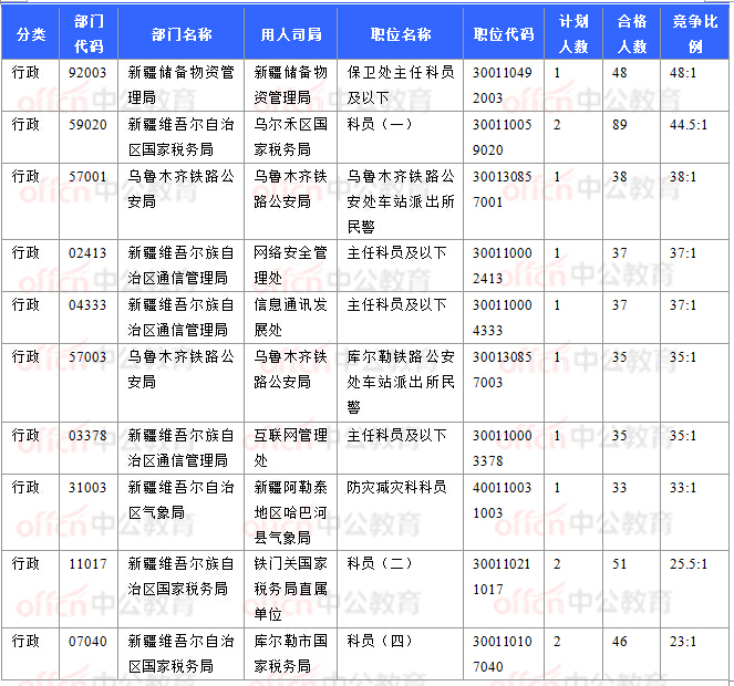 截止到11月1日16時,工作地點在新疆的職位共有65個無人報考,占全部職位的12.3%。下面是無人報考職位一覽表,中公網(wǎng)校專家建議廣大考生多關(guān)注一些較冷職位,避免激烈競爭,結(jié)合自身條件,找到屬于自己的職位。