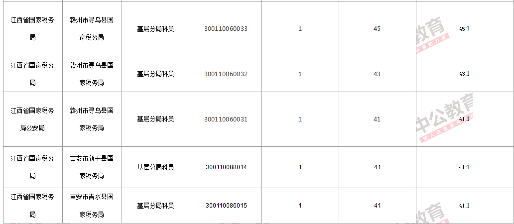 截止到1日17時,競爭比例的職位為江西省國家稅務(wù)局南昌市南昌縣國家稅務(wù)局一職,招錄1人,截止到1日18時通過人數(shù)為105人。