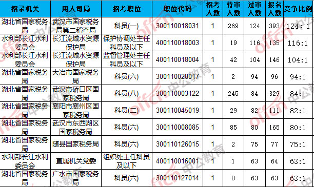 湖北報(bào)名競(jìng)爭(zhēng)最激烈的前十的職位