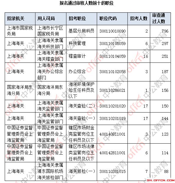 報(bào)名通過審核人數(shù)前十的職位