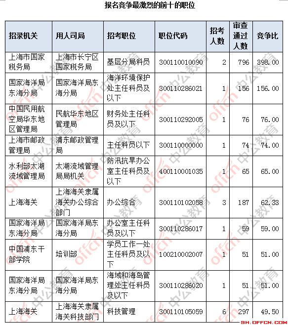 [2日9時]2018國考報名數(shù)據(jù):上海5027人過審 最熱競爭比398:1