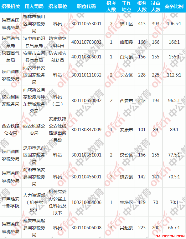 [2日16時]2018陜西國考報名人數(shù)統(tǒng)計:陜西6645人過審 最熱職位196.5:1