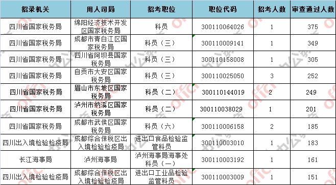 第四日報名通過審核人數(shù)前十的職位主要集四川省國家稅務局等部門,具體信息如下:
