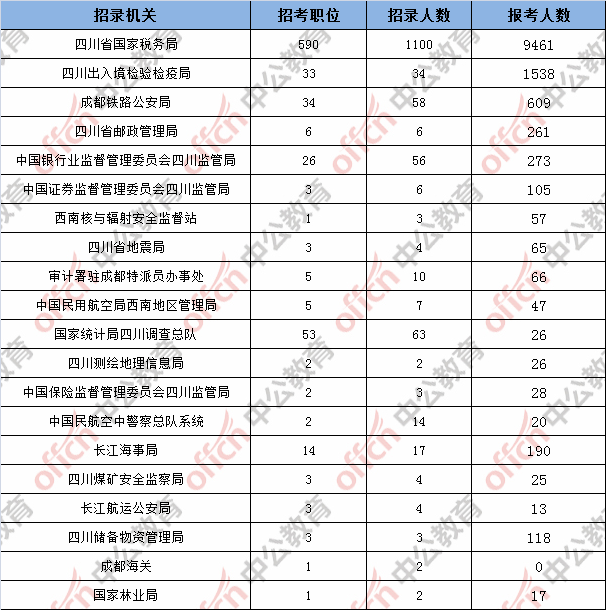為幫助廣大考生更清晰的了解今日報名情況,四川中公教育整理了已審核通過人數(shù)的部門,此數(shù)據(jù)供廣大考生參考:
