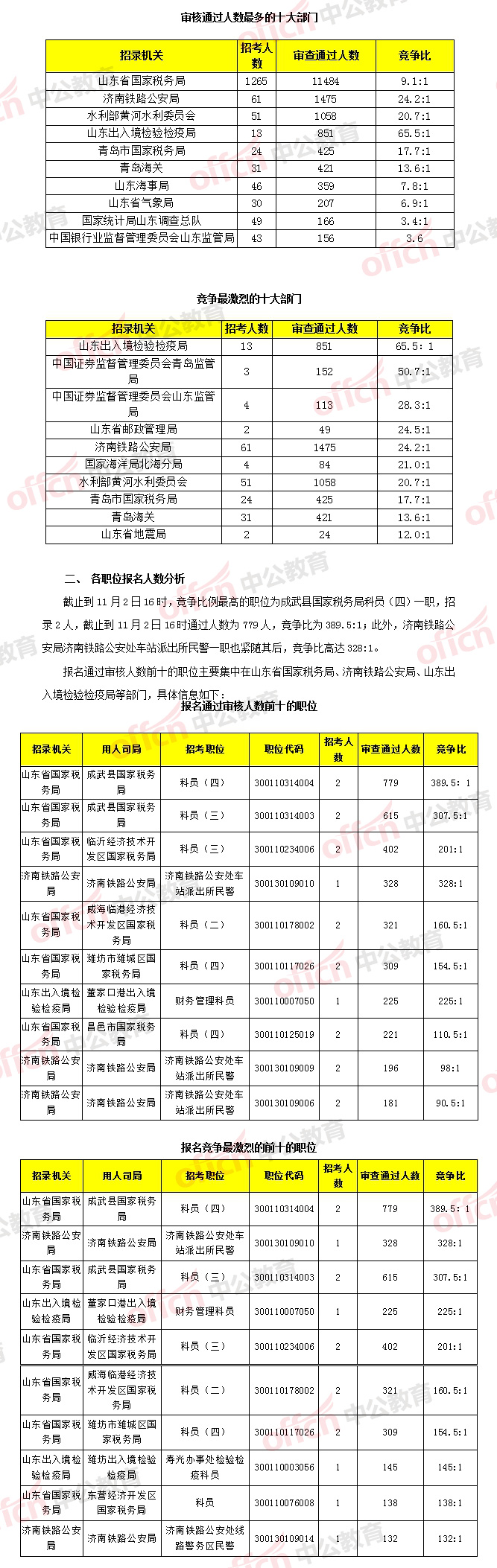 [11月2日16時(shí)]2018國考報(bào)名數(shù)據(jù):山東報(bào)名人數(shù)破2萬 17272人過審 最熱職位已達(dá)389.5:1