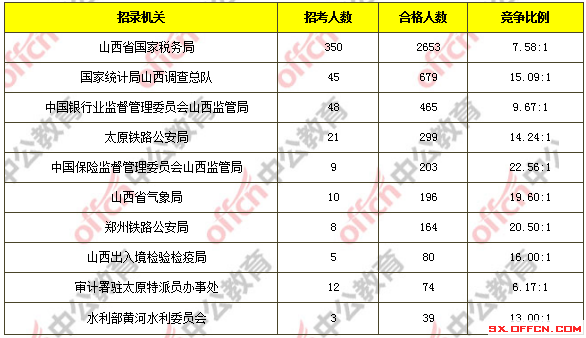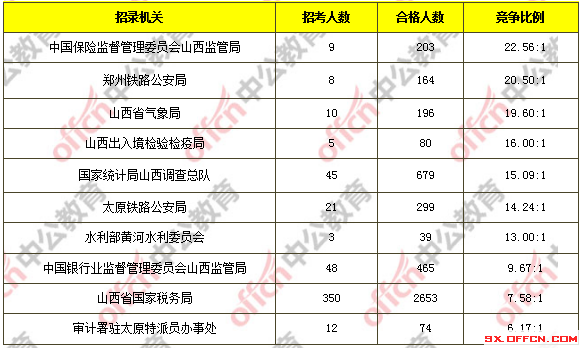 為幫助廣大考生更清晰的了解今日報(bào)名情況,山西中公教育整理了審核通過人數(shù)前十位的部門以及競爭比例最激烈的十大部門,供廣大考生參考: