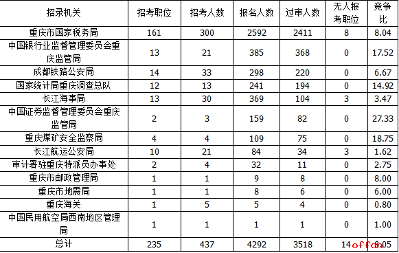 為幫助廣大考生更清晰的了解今日報名情況,中公教育整理了重慶市招錄機關的招錄情況供廣大考生參考: