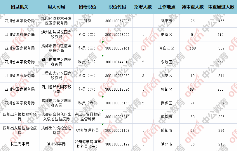 第五日報名通過審核人數(shù)前十的職位主要集四川省國家稅務(wù)局等部門,具體信息如下: