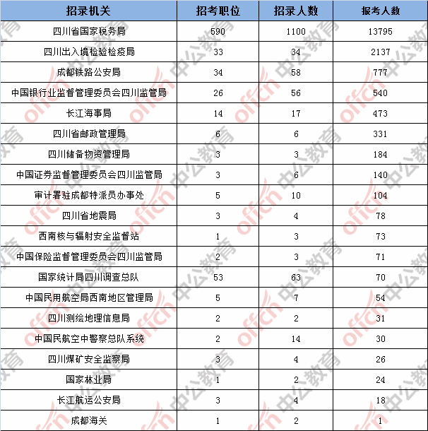 為幫助廣大考生更清晰的了解今日報名情況,四川中公教育整理了已審核通過人數(shù)的部門,此數(shù)據(jù)供廣大考生參考: