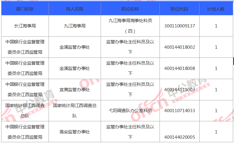 截止到3日16時(shí),工作地點(diǎn)在江西的職位只有8個(gè)無人報(bào)考,僅占全部職位的2%。下面是無人報(bào)考職位一覽表,中公教育專家建議廣大考生多關(guān)注一些較冷職位,避免激烈競爭,結(jié)合自身?xiàng)l件,找到屬于自己的職位。