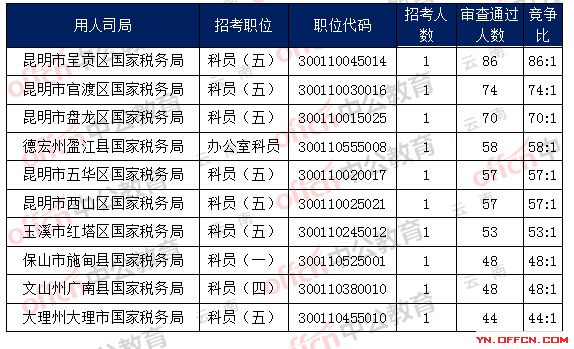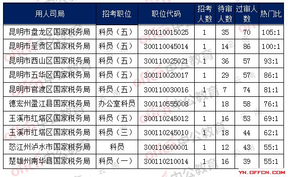 一、云南省國稅局職位報(bào)名人數(shù)分析