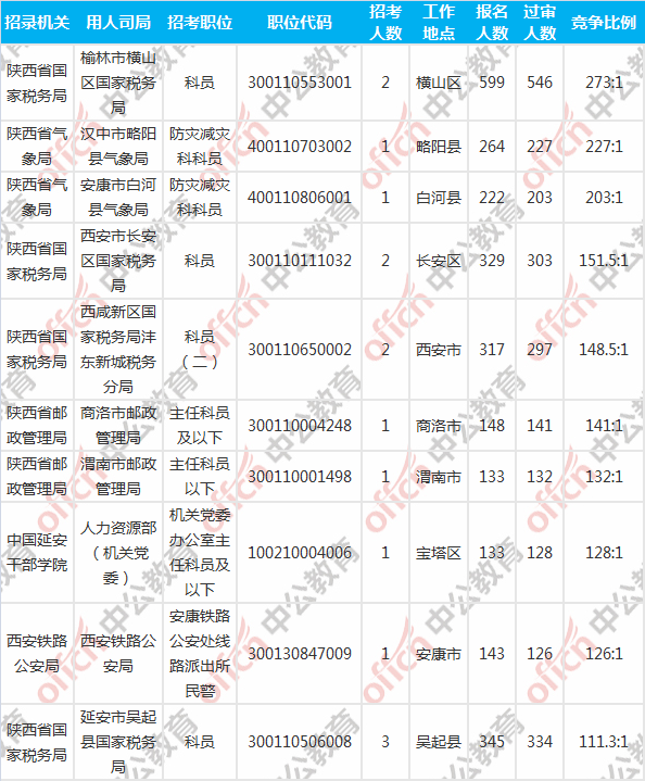 [4日9時(shí)]2018國考報(bào)名數(shù)據(jù):陜西11504人過審 最熱職位273:1