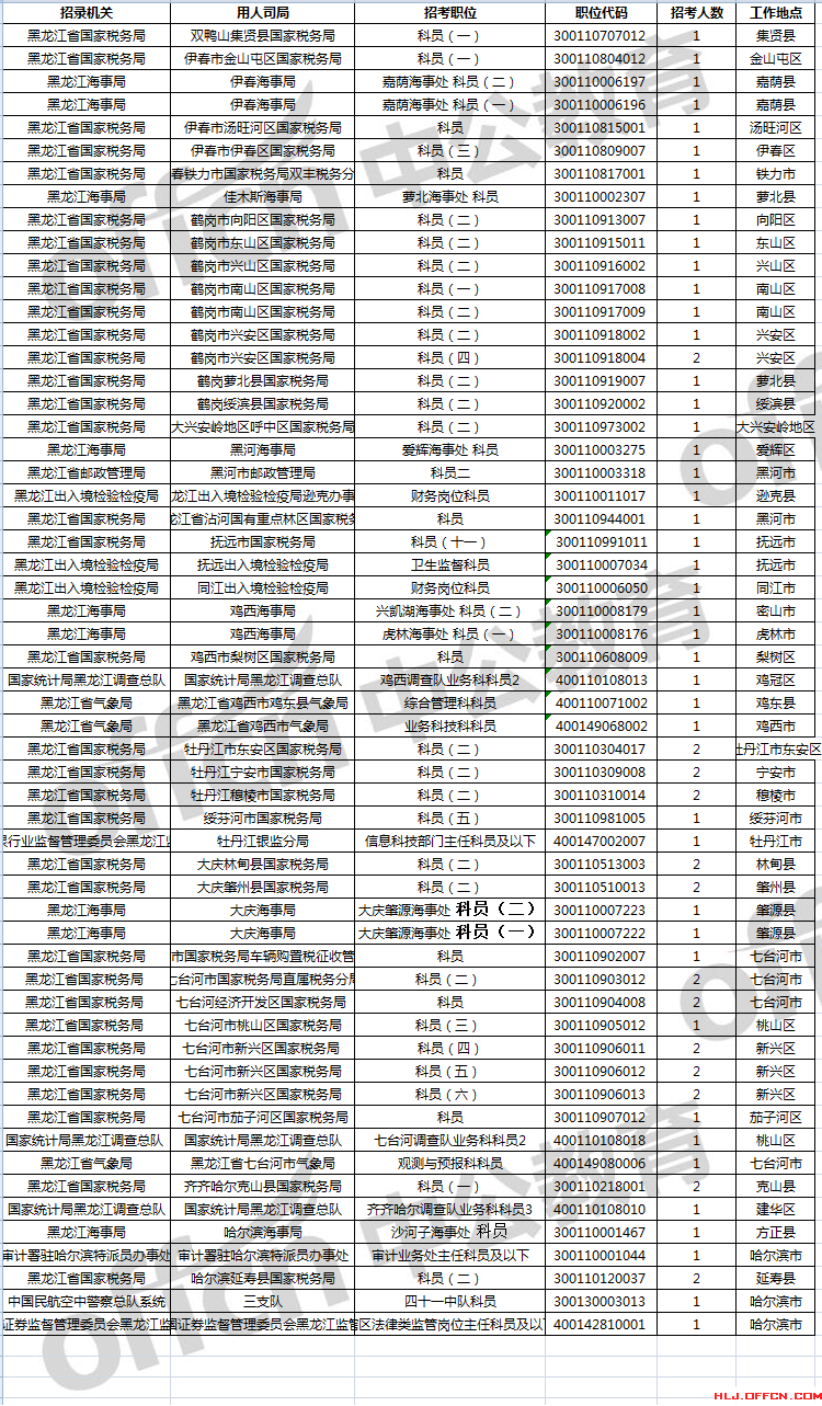 2018國(guó)家公務(wù)員考試報(bào)名時(shí)間已經(jīng)公布,報(bào)名時(shí)間為10月30日至11月8日,筆試時(shí)間為12月10日。報(bào)名已經(jīng)進(jìn)入第五天,截止4日16時(shí),有57個(gè)職位無人通過審核,對(duì)此,中公網(wǎng)校為考生準(zhǔn)備了黑龍江省2018國(guó)家公務(wù)員考試報(bào)名人數(shù)無人報(bào)考崗位,數(shù)據(jù)波動(dòng)比較大,以下信息僅供參考,具體報(bào)名人數(shù)以報(bào)名網(wǎng)站為準(zhǔn),考生可以收藏此頁(yè)面及時(shí)查看2018國(guó)考相關(guān)信息。