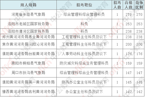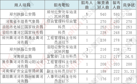 報(bào)名通過(guò)審核人數(shù)前十的職位主要集中在鄭州鐵路公安局、河南省氣象局、河南省國(guó)家稅務(wù)局,具體信息如下: