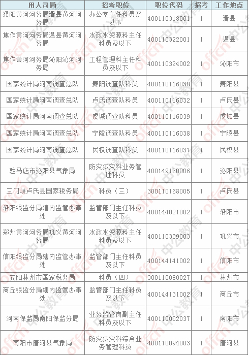 截止到11月4日16時(shí),工作地點(diǎn)在河南的職位共有17個(gè)無人報(bào)考,占全部職位的2.51%,與昨天相比下降了0.49%。下面是無人報(bào)考職位一覽表,中公教育專家建議廣大考生多關(guān)注一些較冷職位,避免激烈競(jìng)爭(zhēng),結(jié)合自身?xiàng)l件,找到屬于自己的職位。