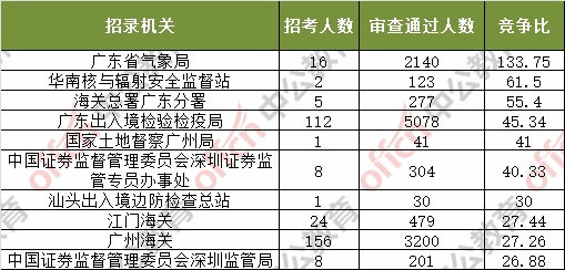 截止到4日16時(shí),通過(guò)審核人數(shù)前三位的部門依次是:廣東省國(guó)家稅務(wù)局、深圳海關(guān)、廣東出入境檢驗(yàn)檢疫局,三部門通過(guò)審核總?cè)藬?shù)達(dá)27454人,占通過(guò)審核總?cè)藬?shù)的61.2%。