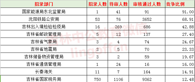 截止到11月4日16時,通過審核人數(shù)前三位的部門依次是:吉林省國家稅務(wù)局、沈陽鐵路公安局、吉林出入境檢驗檢疫局,三部門通過審核總?cè)藬?shù)達13700人,占通過審核總?cè)藬?shù)的91.18%。