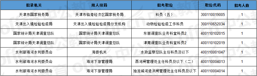 截止到5日16時(shí),工作地點(diǎn)在天津的職位共有7個(gè)無(wú)人報(bào)考,占全部職位的3.3%。下圖是無(wú)人報(bào)考職位一覽表,中公網(wǎng)校專家建議廣大考生多關(guān)注一些較冷職位,避免激烈競(jìng)爭(zhēng),結(jié)合自身?xiàng)l件,找到屬于自己的職位。