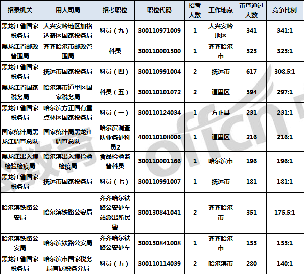 【11月5日16時】2018黑龍江國考報名人數(shù)統(tǒng)計:最熱競爭職位341:1 ,27個職位無人報名