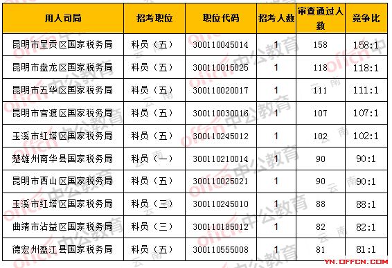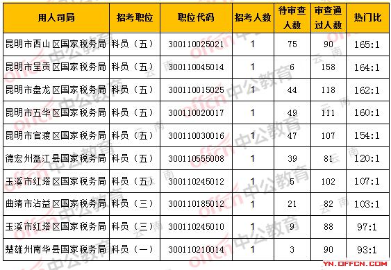 一、云南省國稅局職位報名人數(shù)分析