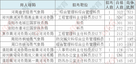 截止到11月5日16時,競爭比例的職位為河南省長垣縣氣象局的綜合管理科綜合管理科員一職位,招錄1人,截止到11月5日16時通過人數(shù)為323人,仍有19個人還在審核中。