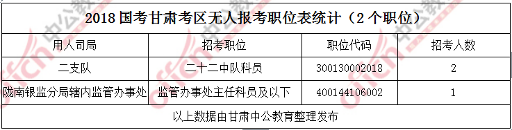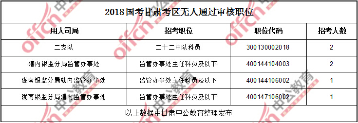 11月6日16時,工作地點在甘肅的職位共有4個職位無人通過審核,占全部職位的1.82%,2個職位無人報考,占全部職位的0.91%。下面是無人待審及無人報報職位一覽表,中公網(wǎng)校專家建議廣大考生多關(guān)注一些較冷職位,避免激烈競爭,結(jié)合自身條件,找到屬于自己的職位。