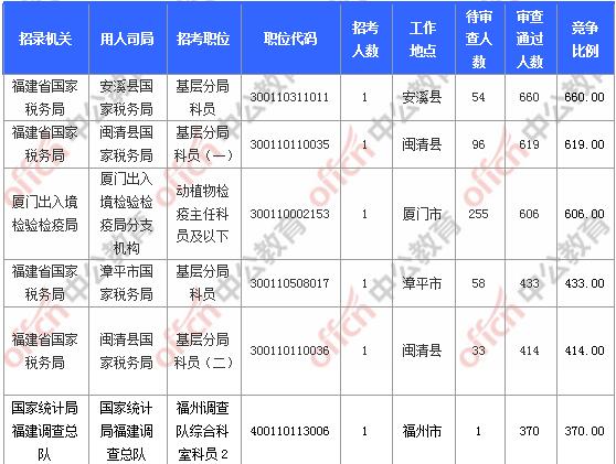 截止到6日16時(shí),工作地點(diǎn)在福建的職位共有8個(gè)無人報(bào)考,占全部職位的3.61%。下面是無人報(bào)考職位一覽表,中公網(wǎng)校專家建議廣大考生多關(guān)注一些較冷職位,避免激烈競(jìng)爭(zhēng),結(jié)合自身?xiàng)l件,找到屬于自己的職位。