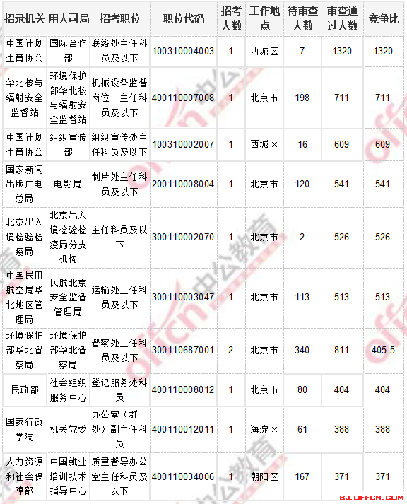 2018國考北京地區(qū)過審人數(shù)最多十大部門