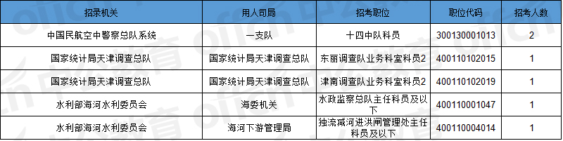 報名通過審核人數(shù)前十的職位主要集中在天津海關(guān)、北京鐵路公安局、天津出入境檢驗檢疫局等部門,具體信息如下:
