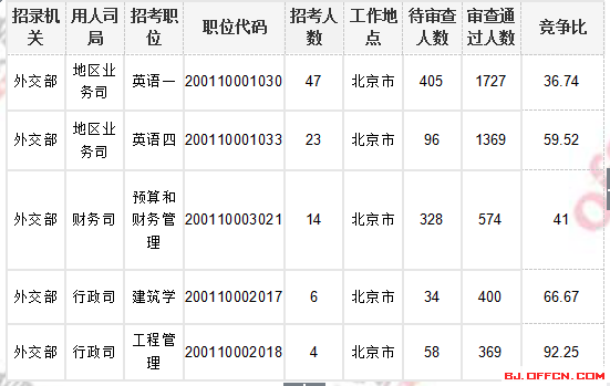 2018國考北京地區(qū)過審人數(shù)最多十大職位