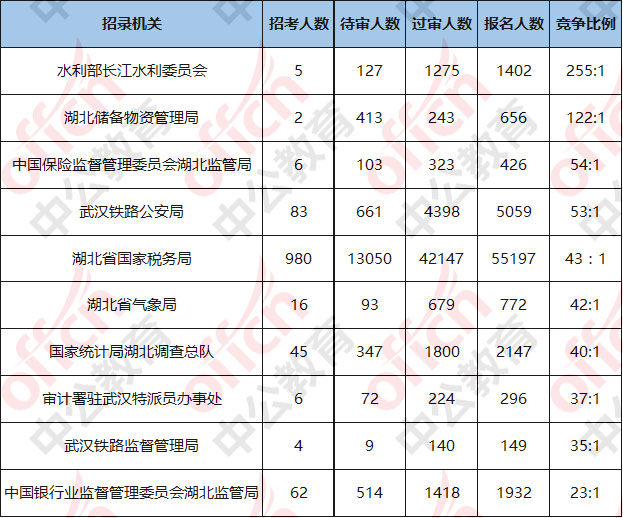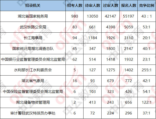 湖北報(bào)名競(jìng)爭(zhēng)最激烈的十大部門