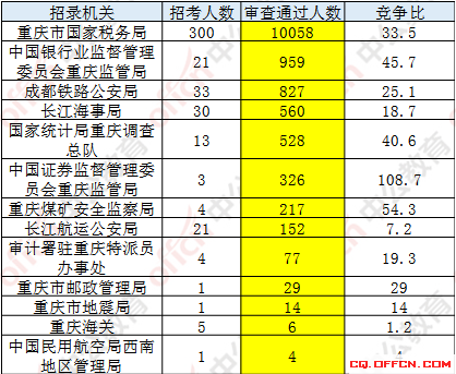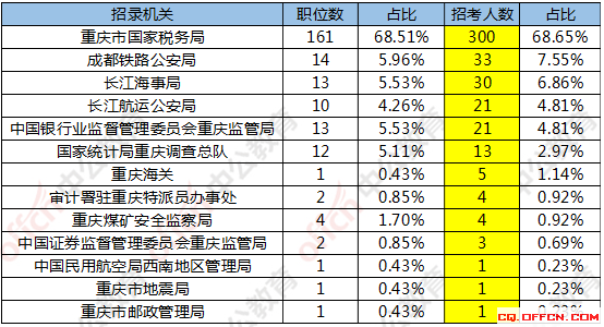 為幫助廣大考生更清晰的了解今日?qǐng)?bào)名情況,中公網(wǎng)校整理了重慶市招錄機(jī)關(guān)的招錄情況,供廣大考生參考: