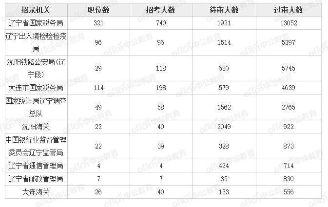 為幫助廣大考生更清晰的了解今日?qǐng)?bào)名情況,中公網(wǎng)校整理了審核人數(shù)前十位的部門以及競(jìng)爭(zhēng)比例最激烈的十大部門,供廣大考生參考: