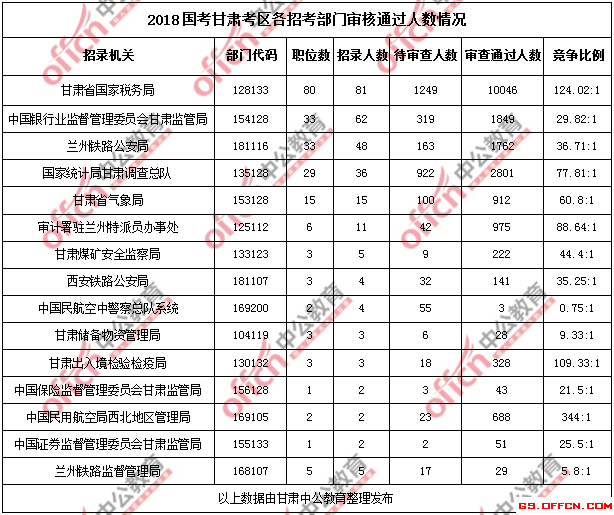 11月8日16時(shí),通過審核人數(shù)前三位的部門依次是:甘肅省國(guó)家稅務(wù)局、國(guó)家統(tǒng)計(jì)局甘肅調(diào)查總隊(duì)、中國(guó)銀行業(yè)監(jiān)督管理委員會(huì)甘肅監(jiān)管局。三部門通過審核總?cè)藬?shù)達(dá)14696人,占通過審核總?cè)藬?shù)的73.94%。