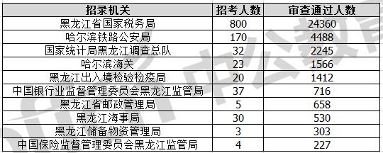 截止到11月8日16時(shí),通過審核人數(shù)前三位的部門依次是:黑龍江省國家稅務(wù)局、哈爾濱鐵路公安局、國家統(tǒng)計(jì)局黑龍江調(diào)查總隊(duì),三部門通過審核總?cè)藬?shù)達(dá)31093人,占通過審核總?cè)藬?shù)的83.44%。其中黑龍江省國稅局審核通過人數(shù),與去年同期相比增加了7165人。