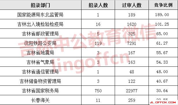 為幫助廣大考生更清晰的了解今日報名情況,中公網(wǎng)校整理了審核通過人數(shù)前十位的部門以及競爭比例最激烈的十大部門,供廣大考生參考: