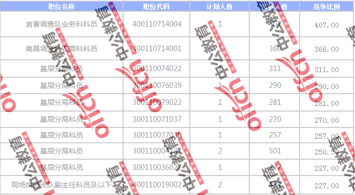 截止到8日17:30時,競爭比例的職位為國家統(tǒng)計局江西調(diào)查總隊國家統(tǒng)計局江西調(diào)查總隊宜春調(diào)查隊業(yè)務科科員一職,招錄1人,截止到8日17:30時通過人數(shù)為407人,競爭比為407:1